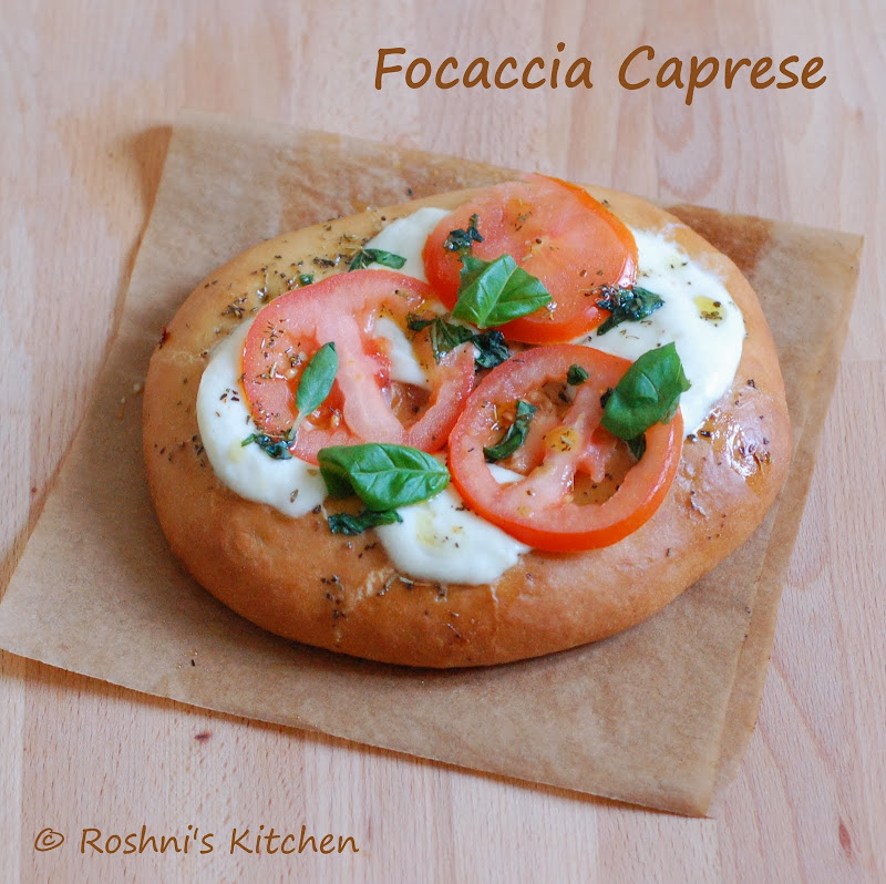 Focaccia Caprese is a variation of Focaccia influenced by the Capri region on Italy. The flavours usually included are Mozzarella, Tomato and Basil like in a Caprese Salad. As you might know I am part of a Baking Group called 'We Knead to Bake'. We bake a bread every month based on the recipe given by Aparna. After a successful year (yes, we baked 12 breads together and learned a lot), we are moving on to the second year with newer members and newer adventures.