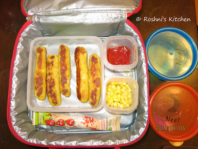 As I posted earlier that I will be posting some Kids Lunch Box recipes and ideas. I am starting with my son's favourite recipe - the potato logs or potato sticks. This recipe was given to me by Niv of Panfusine